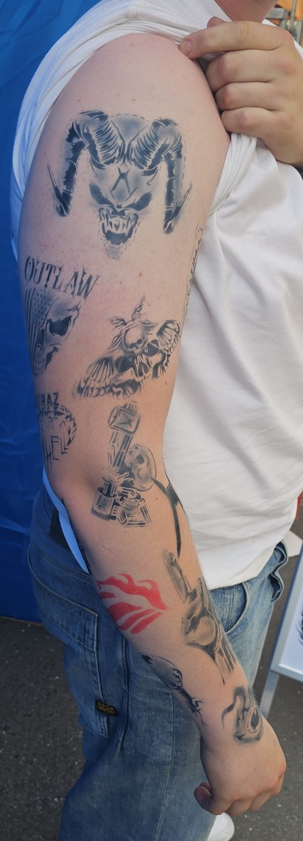 De gebruikte bodypaint is waterbestendig en laat unieke tekeningen toe. De tijdelijke tattoo blijft ongeveer een week zichtbaar. Alle mogelijke stijlen, kleuren en tekeningen zijn mogelijk. Uiteraard is de gebruikte bodypaint niet schadelijk. Het plaatsen van een tattoo duurt slechts enkele minuten, waardoor er veel mensen van kunnen genieten. Een succes op elk evenement en feest.