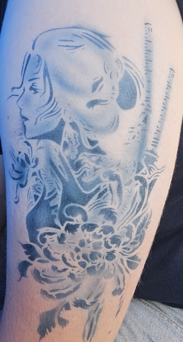 Ondertussen heb ik al een 200-tal eigen ontworpen tattoos van 3cm tot 20cm waaruit u kan kiezen. Uiteraard kan u ook een eigen ontwerp aanbrengen.